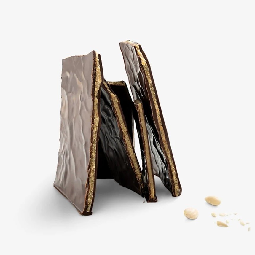Is this a cube of ganache to enjoy frozen? This is the promise of this chocolate innovation by Nicolas Cloiseau. His idea: to recreate the feeling of a frozen chocolate mousse but without ice cream. He kept the cream in his ganaches, he also kept the chocolate taste and intensity, only the texture changed. It is by incorporating his ganache into a milk foam that he obtains the desired structure.